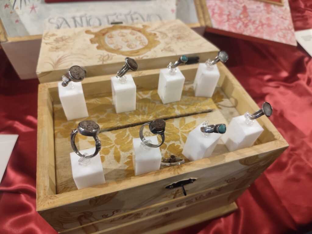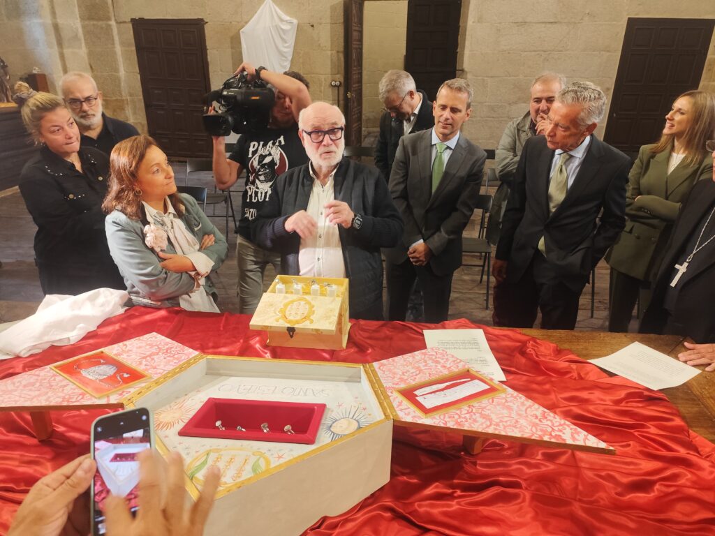 Al finalizar esta primera parte del acto se pudo pasar a la sacristía para presentar y ver por primera vez las réplicas de los anillos de los Obispos Santos, contando con la explicación del joyero D. José Luis Ferreiro, quien se emocionaba al explicar el proceso de trabajo que le llevó a conseguir una réplica tan fiel a los originales.