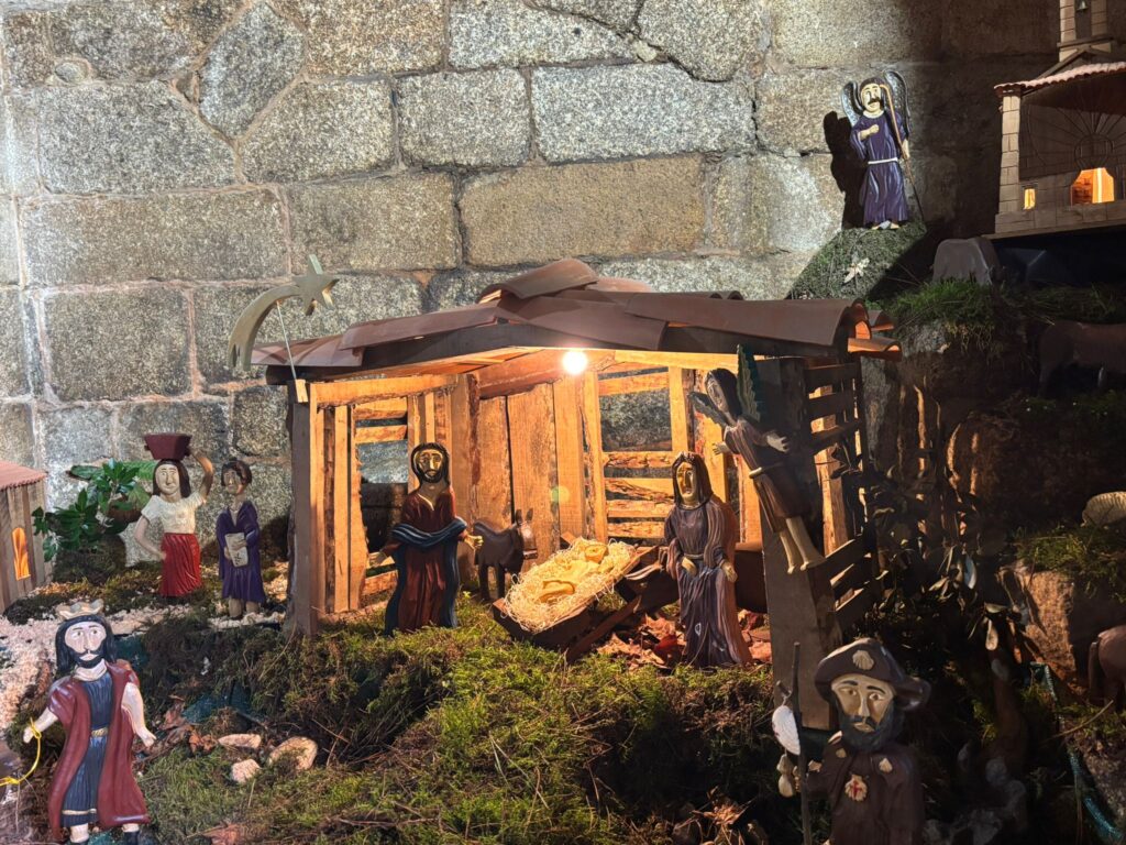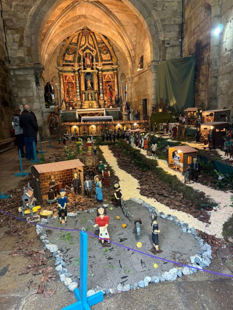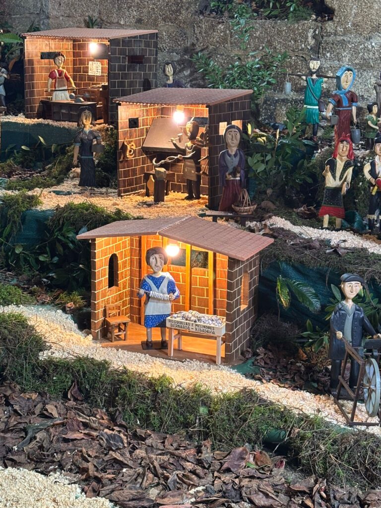 tallistas…), casas y comercios históricos y populares ( Tafona da Herminia…) monumentos y fiestas populares (Capilla de San Xes, Iglesia da Oliveira y Boda Judía de la Festa da Istoria); Banda da Lira, gigantes y cabezudos …son otras de las escenas con las que cuenta este original Nacimiento que este año estrena 19 piezas más.