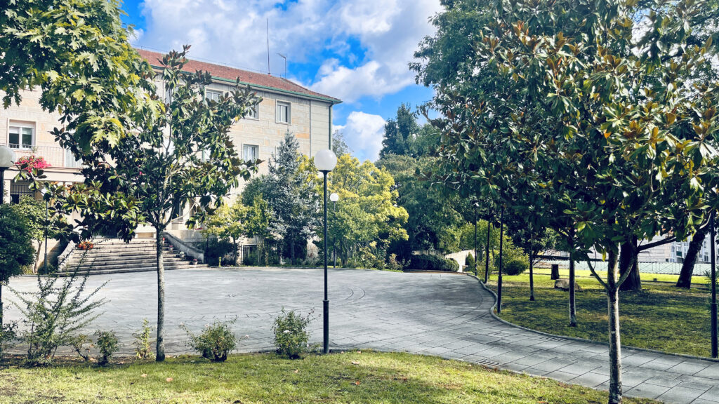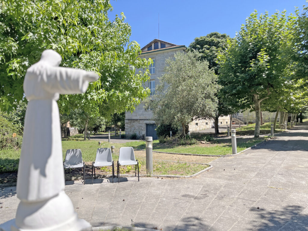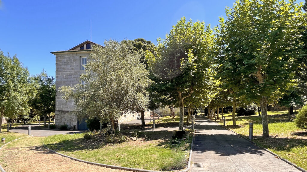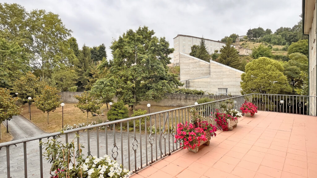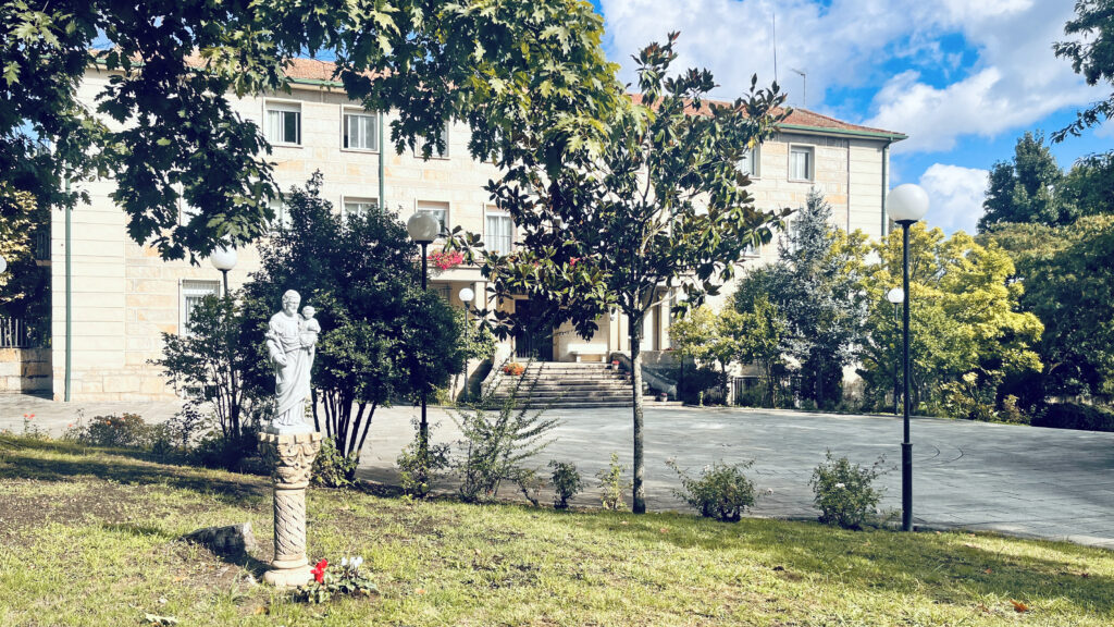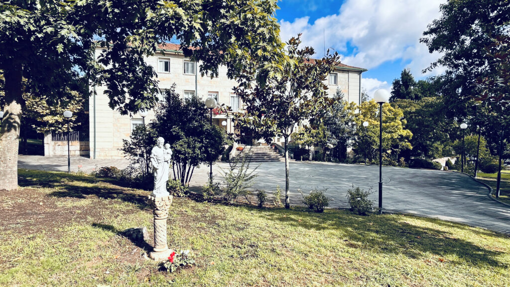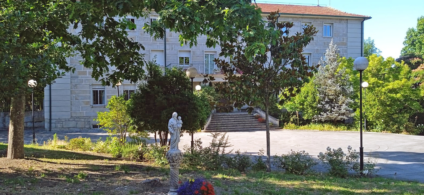 Fotografías de la Casa diocesana de ejercicios «Santa María Nai»: entrada principal, exteriores, jardín, instalaciones del sótano, planta principal, primer y segundo piso.