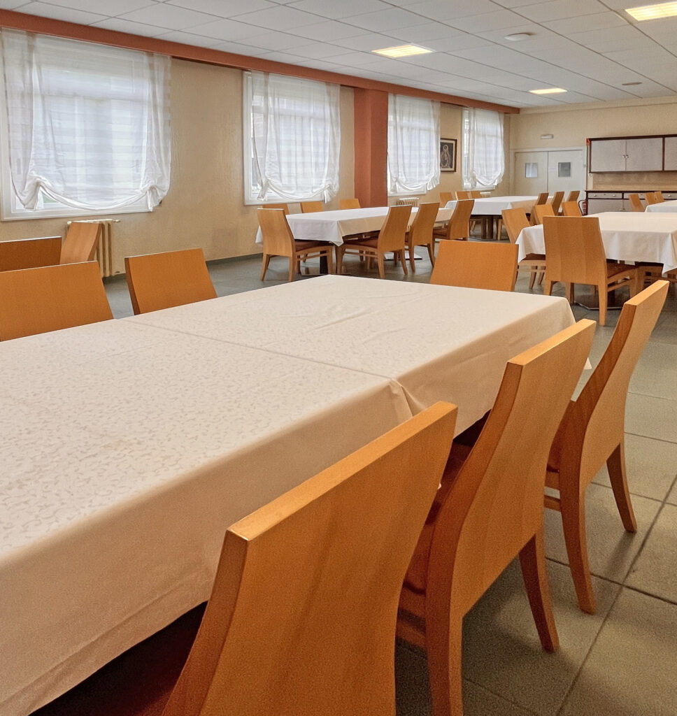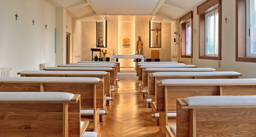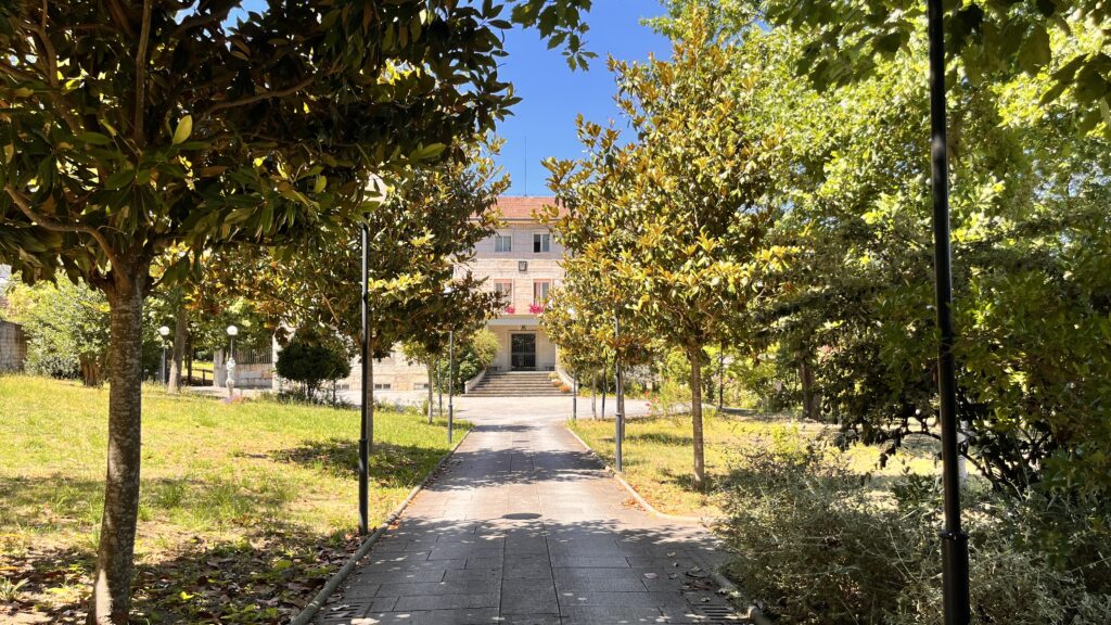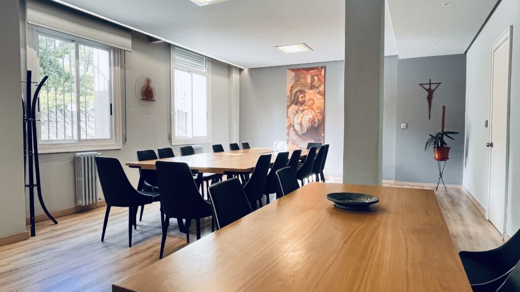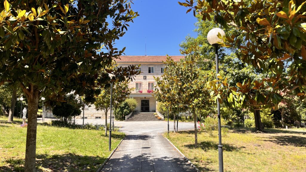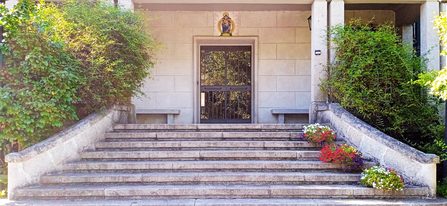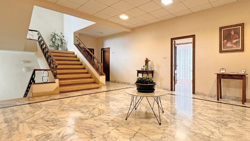 Fotografías de la Casa diocesana de ejercicios «Santa María Nai»: entrada principal, exteriores, jardín, instalaciones del sótano, planta principal, primer y segundo piso.