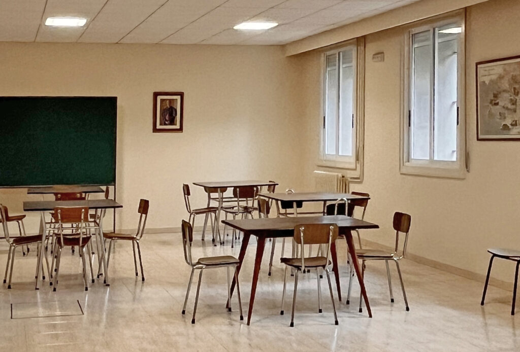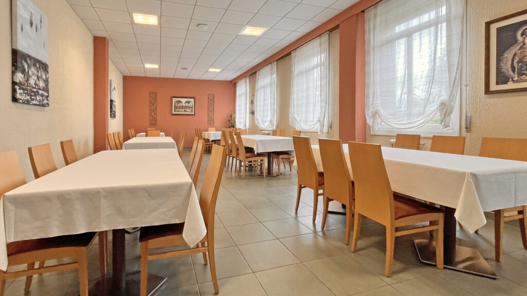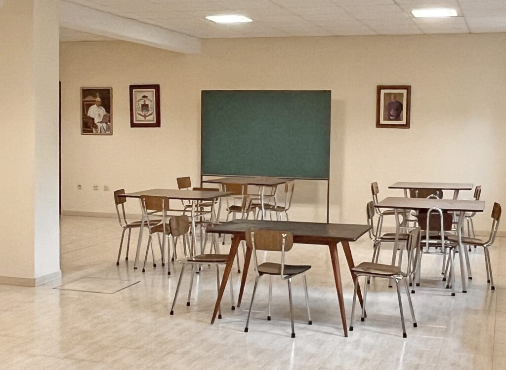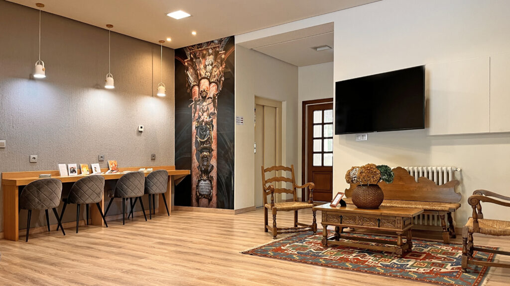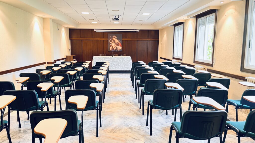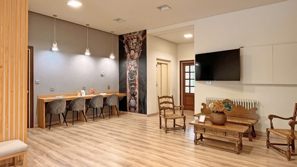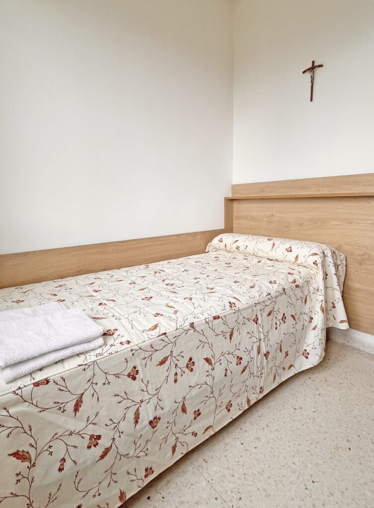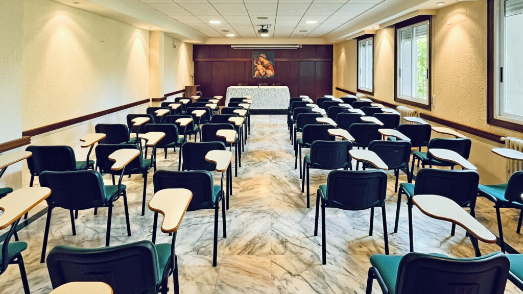 Fotografías de la Casa diocesana de ejercicios «Santa María Nai»: entrada principal, exteriores, jardín, instalaciones del sótano, planta principal, primer y segundo piso.